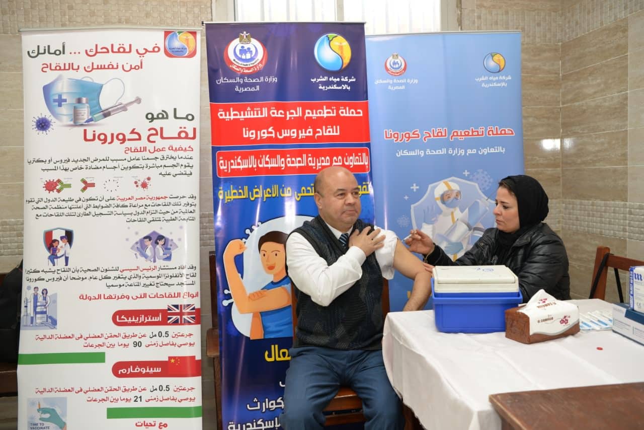 مياه الاسكندرية تمنح العاملين جرعة تنشيطة ثالثة ضمن الإجراءات الاحترازية لمواجهة فيروس كورونا.