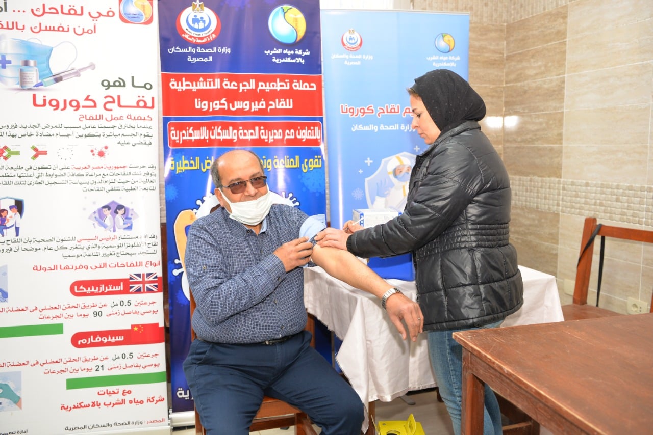 أكد المهندس أحمد جابر، رئيس شركة مياه الشرب بالإسكندرية، أنه فى إطار توجيهات الشركة القابضة لمياه الشرب والصرف الصحى باستمرار اتخاذ الإجراءات اللازمة لمواجهة تداعيات فيروس كورونا، قامت إدارة السلامة و الصحة المهنية وإدارة الأزمات والكوارث، بالتنسيق مع مديرية الصحة، بمنح العاملين بالشركة تطعيم الجرعة التنشيطية الثالثة للعاملين وأسرهم بالمكان الذى تم تجهيزه بمحطة شرقى.