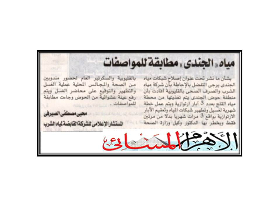 مياه الجيزة … قطع المياه لمدة ٦ ساعات عن بشتيل لعبة مساء الجمعة