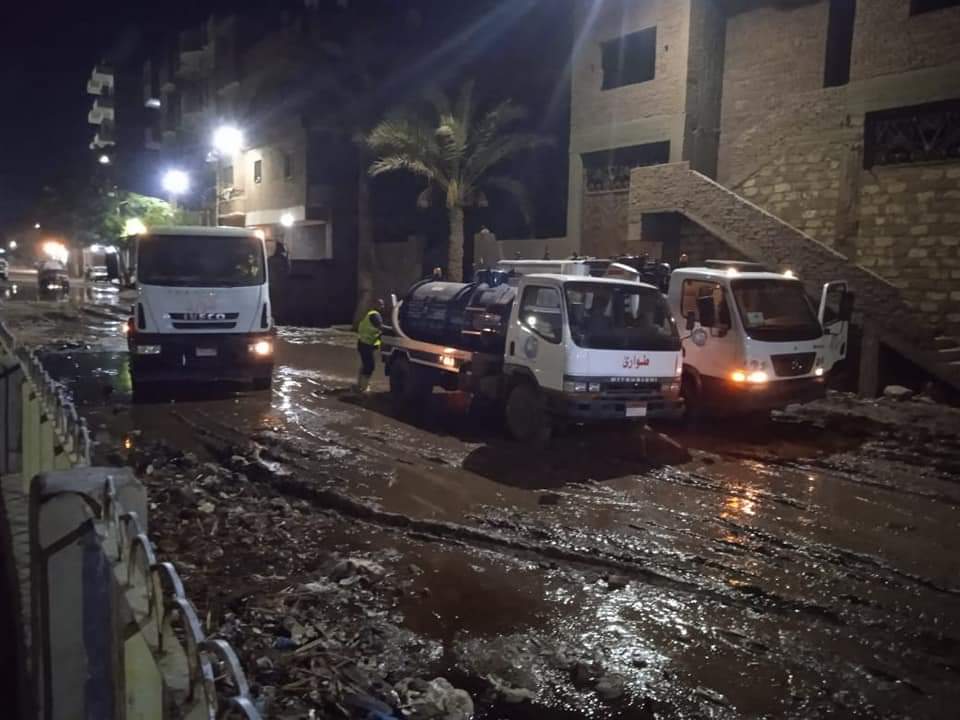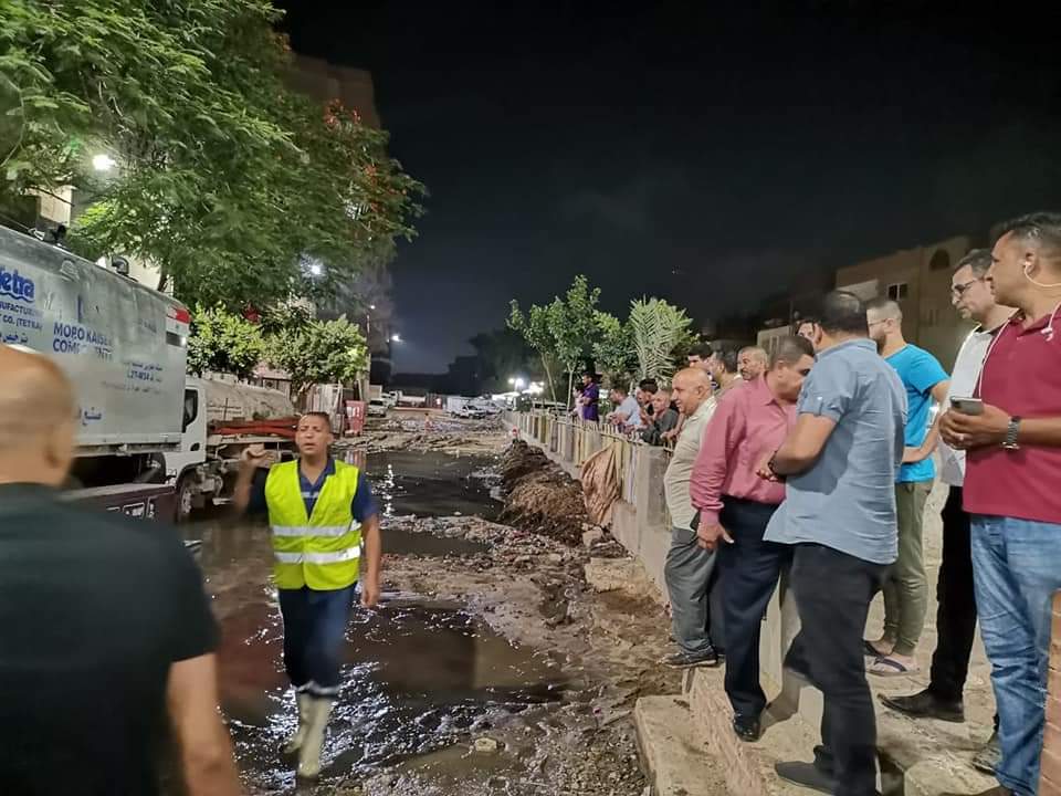 تمكنت شركة مياه الشرب والصرف الصحي بالجيزة من إصلاح كسر بخط الطرد الرئيسي لمحطة رفع صرف صحي شبرامنت قطر ٦٠٠مم