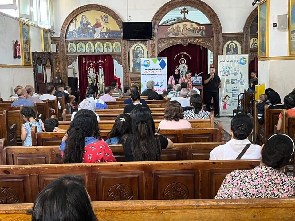 وشهدت كنيسة العذراء القديمة بالوراق تنفيذ العديد من الأنشطة التوعوية، شملت نشر رسالة التوعية بأهمية ترشيد المياه بين رواد الكنيسة، وتوزيع مطبوعات تحمل رسائل التوعية بأهمية المياه والاستخدام الأمثل لشبكات الصرف الصحي، وعمل مسرح عرائس وأنشطة تفاعلية للأطفال، وورش لتعليم مبادئ السباكة المنزلية الخفيفة.
