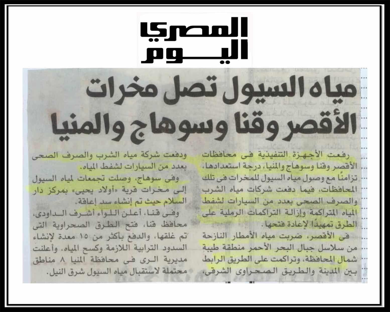 مياه السيول تصل مخرات الاقصر وقنا وسوهاج المنيا