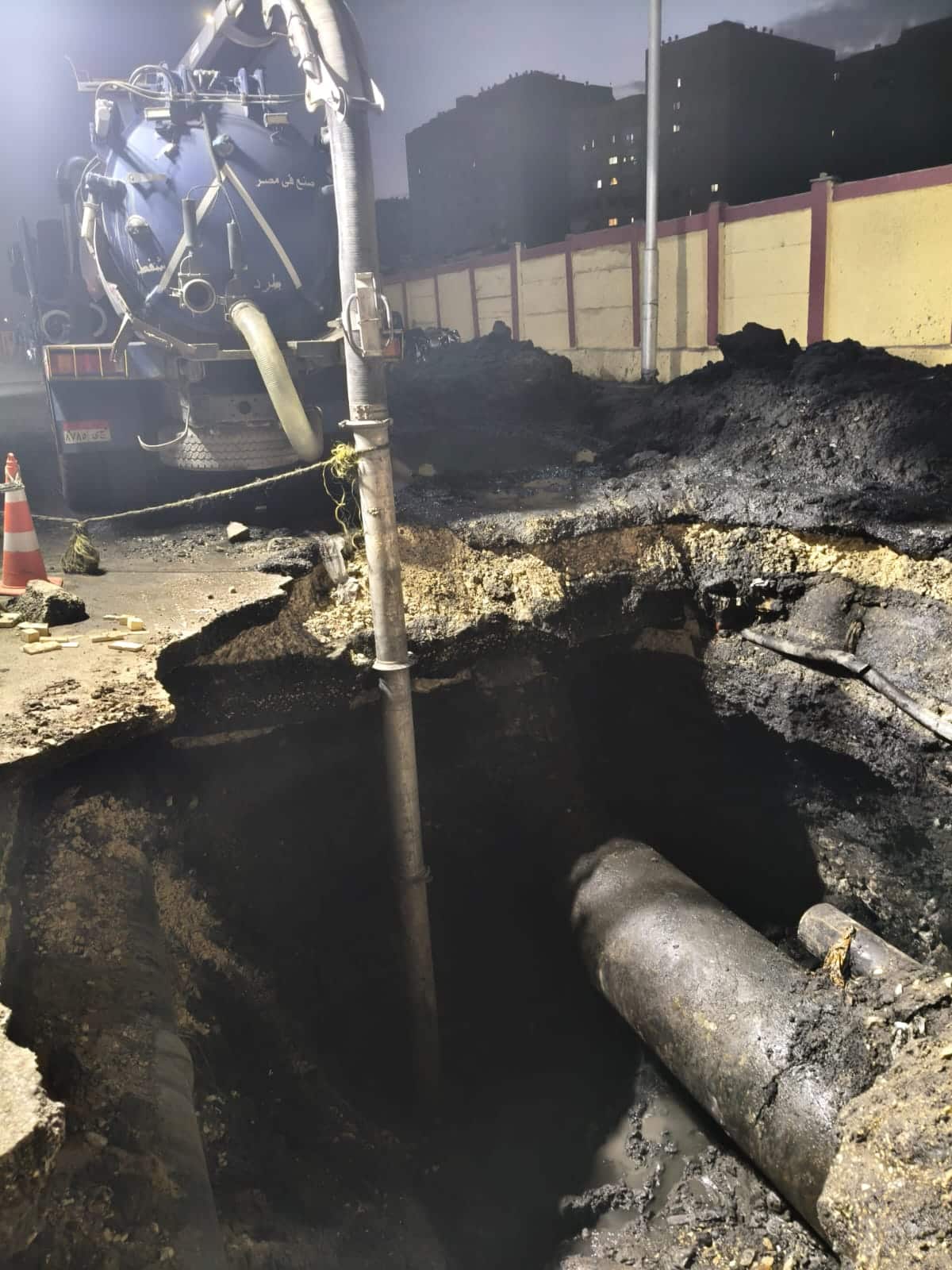 مياه الشرب بالجيزة: كسر مفاجئ بخط مياه قطر 1000 مم أمام مستشفى أم المصريين