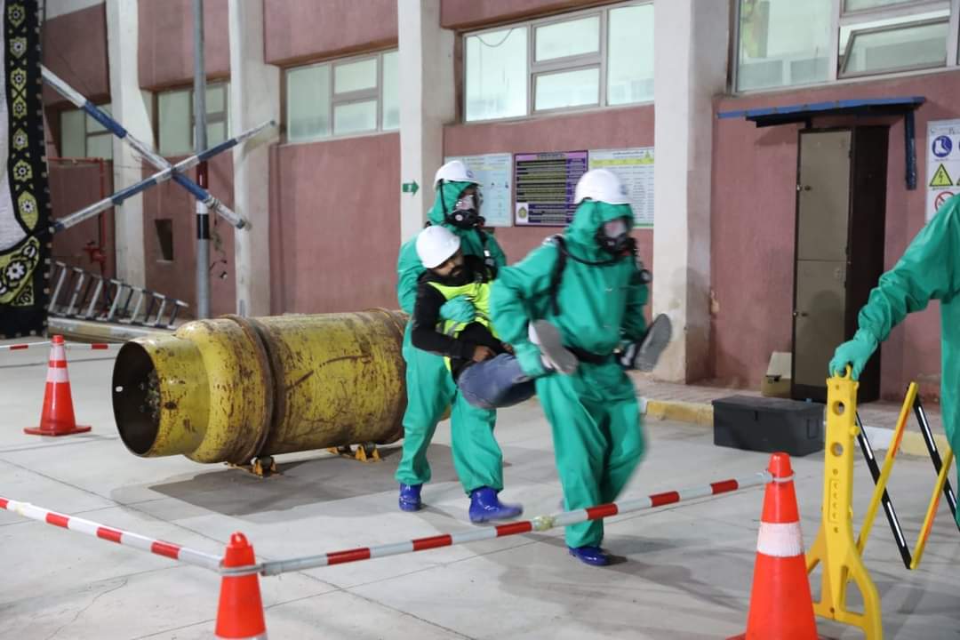 جدير بالذكر أن الاحتفالية شملت محاكاة عملية عن كيفية التعامل مع مخاطر الأماكن الضيقة والمحصورة، ومخاطر الكلور.
