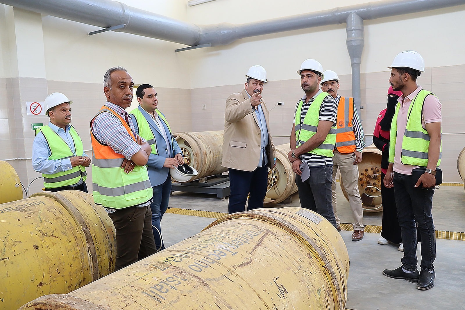 جاء ذلك بحضور اللواء عمرو الشيخ مدير عام السلامة والصحة المهنية بالشركة القابضة لمياه الشرب والصرف الصحي والمهندس وجدى جمال أخصائي سلامة وصحة مهنية والأستاذ محمد يوسف اخصائي سلامة وصحة مهنية بالشركة القابضة والدكتور مهندس إسلام الهلالي نائب عميد كلية الهندسة واستشاري المشروع والمهندس محمد عبد المنعم استشاري مشروع توسعات الصرف الصحي الممول من البنك الأوروبي لإعادة الإعمار والتنمية وممثلين عن شركة سبكترا للمقاولات والمكتب الاستشاري ستانتينك للخدمات التخصصية والمقاولات وشركة الخرافي للمقاولات ولفيف من المهندسين والكيميائيين واخصائيين السلامة والصحة المهنية بالشركة.