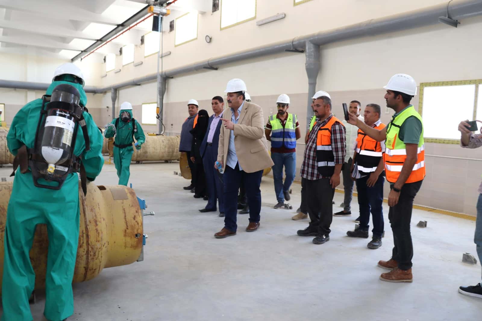 وفى هذا السياق، نظمت الشركة القابضة زيارة ميدانية لمحطة مياه العزب الجديدة بالفيوم بهدف التعرف على مخاطر الكلور والاعتبارات التصميمية وجوانب السلامة والصحة المهنية في تصميم وتنفيذ مشروع إنشاء عنبر ومخزن الكلور بالمحطة التي تم تنفيذها وفقًا لأفضل المعايير والإشتراطات الدولية في مجال السلامة والصحة المهنية بهدف الاستفادة من التجربة والمعرفة المكتسبة في جميع المشروعات الجارية بالشركة.