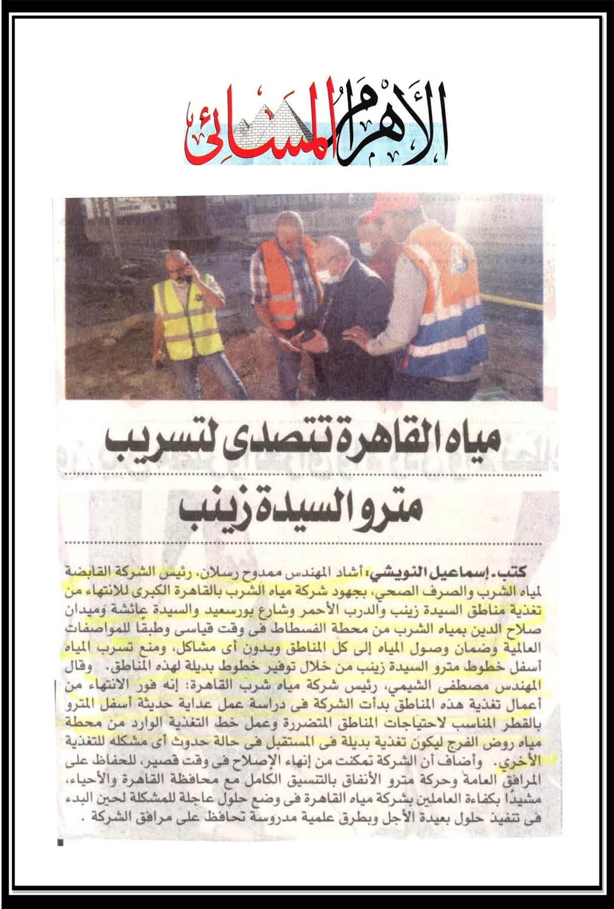 مياه القاهرة تتصدى لتشريب مترو السيدة زينب