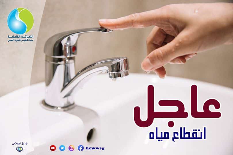 أعلنت شركة مياه الشرب والصرف الصحي بالقليوبية انقطاع المياه عن بعض مناطق مدينة الخانكة ( ابو مترد – منطقة أرض التين – مساكن الايواء – البولاقي – الجبل الاصفر ) وجاري اعمال الاصلاح