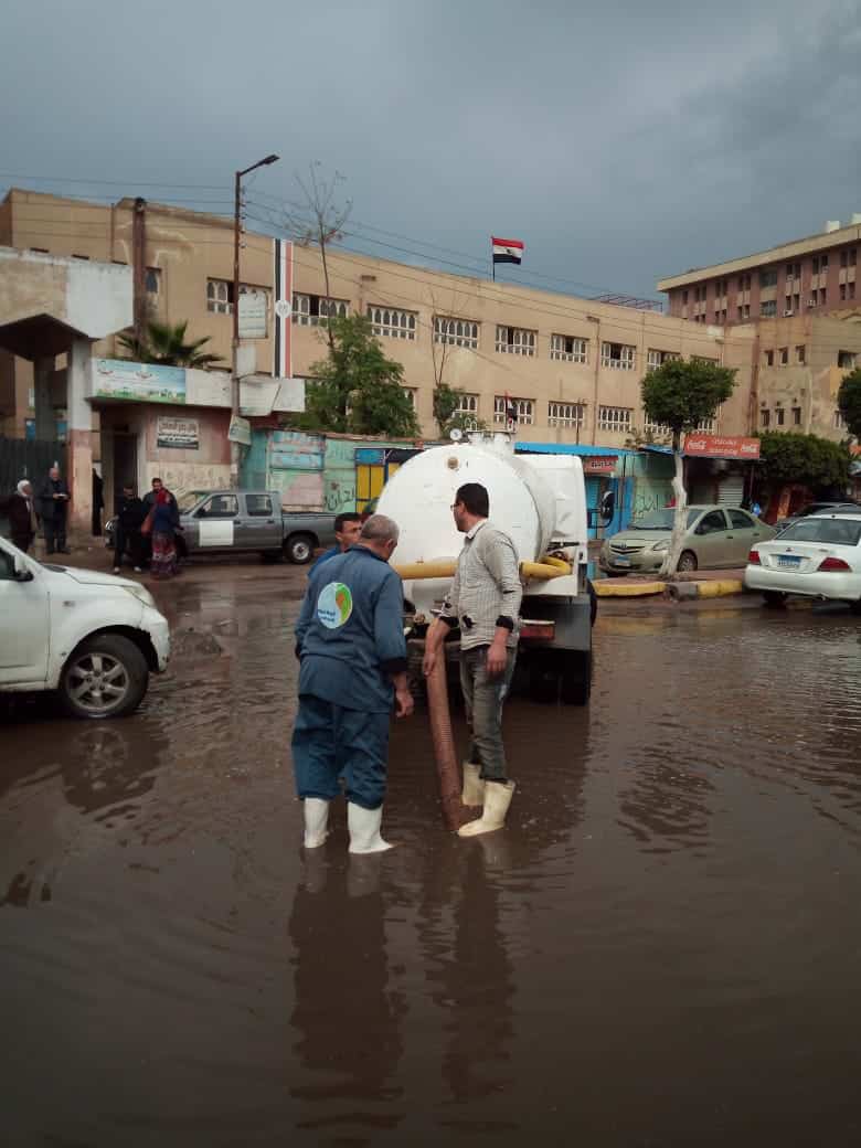 وكلف رؤساء الافرع بمتابعة عملية شفط مياه الأمطار بالشوارع وعلى الفور تم الدفع بالمعدات اللازمة من عربات الكسح وماكينات الشفط لمواجهة موجة الطقس السيئ والتي ادت الي هطول أمطار علي أماكن متفرقة بالمحافظة.
