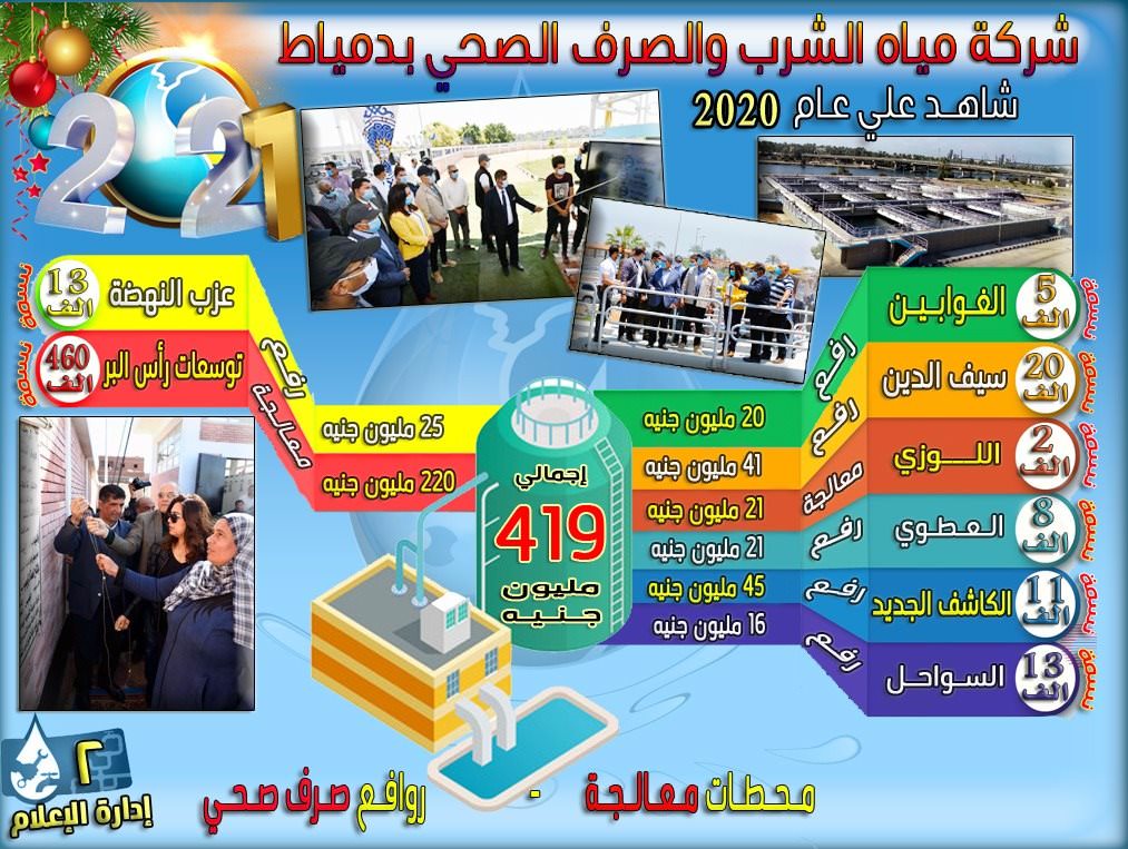 بالانفوجراف انجازات قطاعى المياه والصرف الصحى بدمياط خلال عام 2020