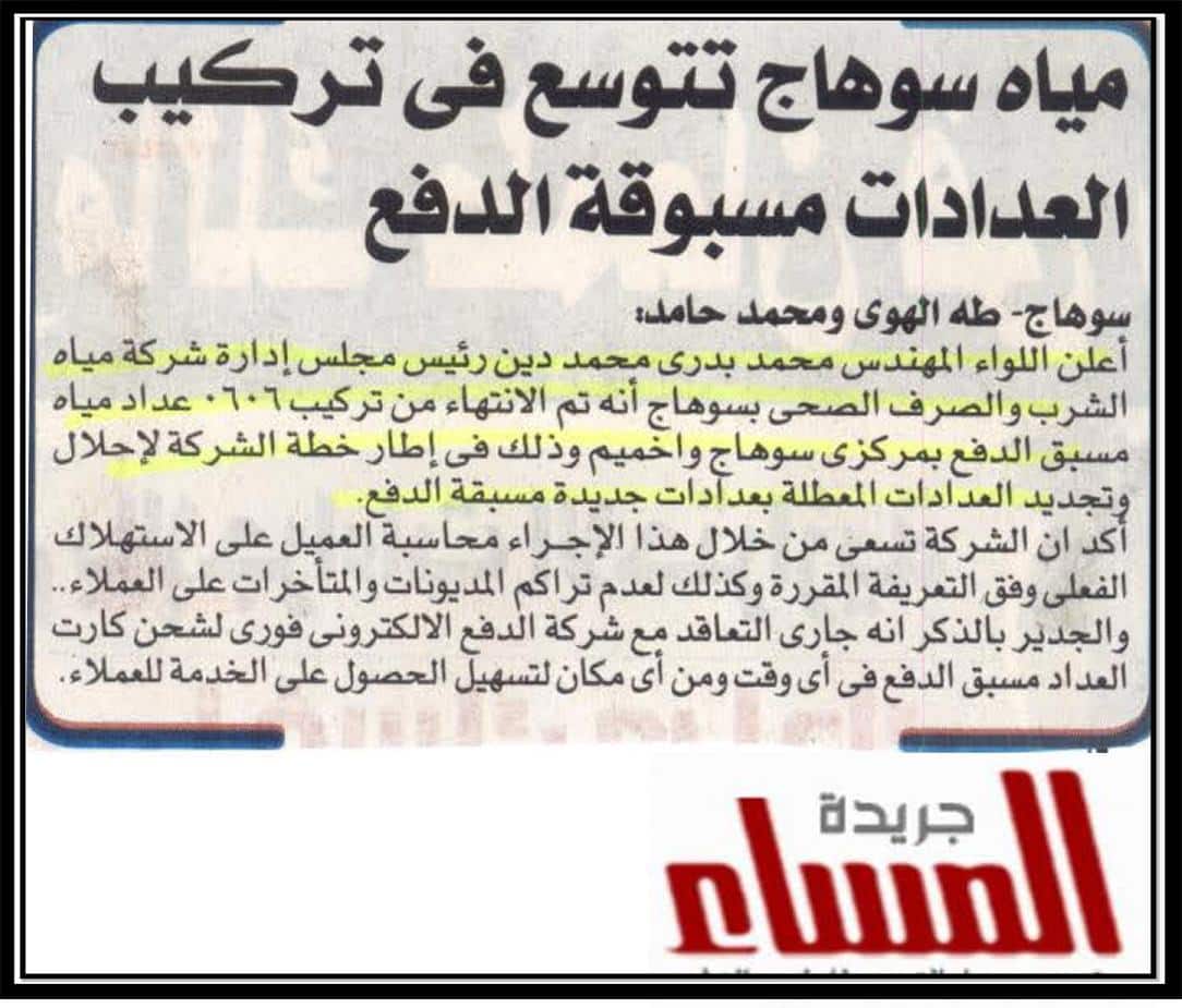 مياه سوهاج تتوسع في تركيب العدادات مسبوقة الدفع .
