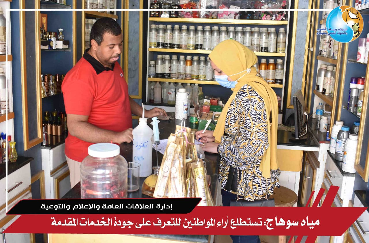 وأوضح رئيس مياه سوهاج ان الاستطلاعات تبحث مدى جودة خدمات مياه الشرب والمشكلات الخاصة بالصرف الصحي وكذلك الالتزام في قراءة العدادات ومدى رضا العملاء عن الخدمات المقدمة وانه يتم خلال الاستطلاع تحليل عينات مياه للتأكد من مطابقة مياه الشرب للمواصفات القياسية لجودة المياه كما يتم توعية المواطنين بالخدمات التى تقدمها الشركة هذا بالاضافة الى توعيتهم باهمية ترشيد استهلاك المياه والحفاظ عليها من الاهدار.