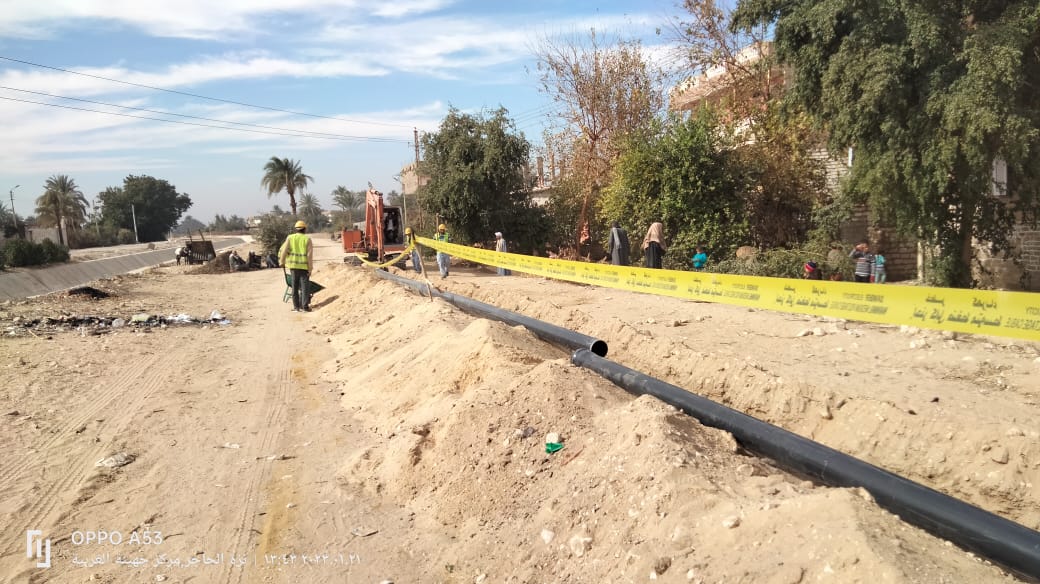 كما تتم اعمال الاحلال والتجديد لشبكات مياه الشرب بمركز جهينة بشارع عمر بن الخطاب غرب منطقة الصنايع وكذلك قرية نزة المحزمين والشريفة الغربية ونجع الحويج بجهينة الشرقية والتى يستفيد منها 45 الف نسمة.