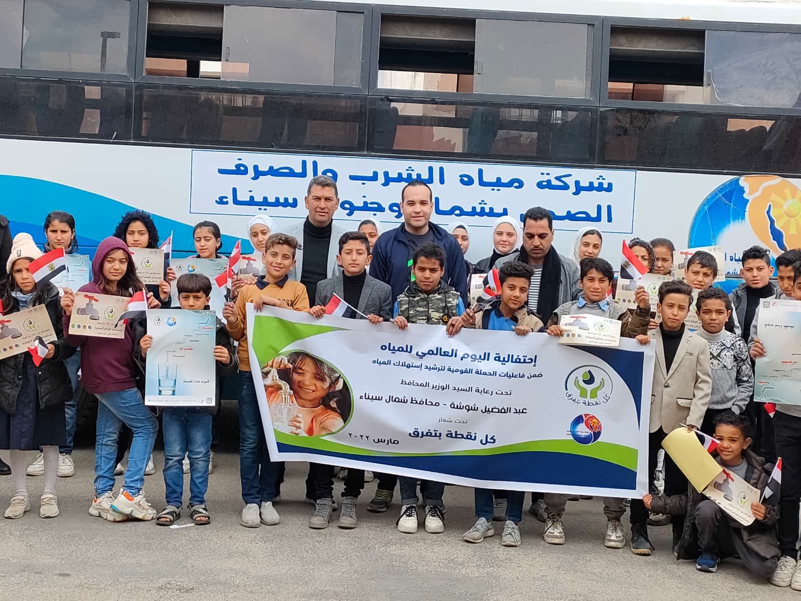 وصرح اللواء مهندس أحمد عرفه رئيس شركة مياه الشرب والصرف الصحى بشماء وجنوب سيناء، أنه انطلاقاً من اعتزازنا بخدمة أهالي سيناء فقد تقرر إطلاق حملات التوعية و الاحتفال باليوم العالمي للمياه لكافة اطياف اهالي سيناء الحبيبة بمختلف فئاتهم برعاية السادة محافظي شمال و جنوب سيناء للتعريف بالخدمات التي تقدمها الدولة المصرية فيما يتعلق بخدمات مياه الشرب و الصرف الصحي.
