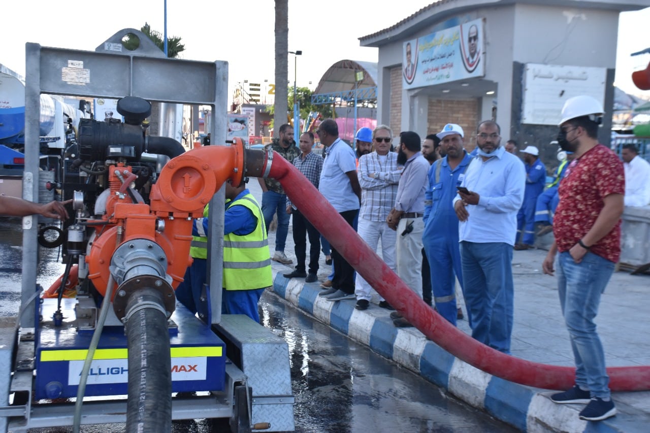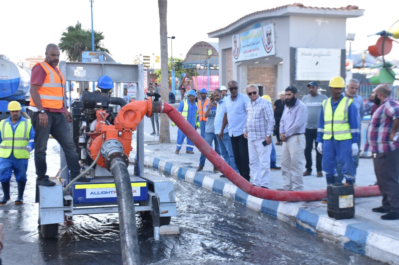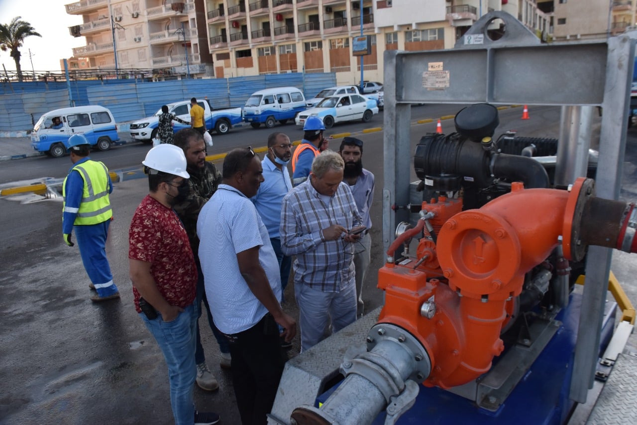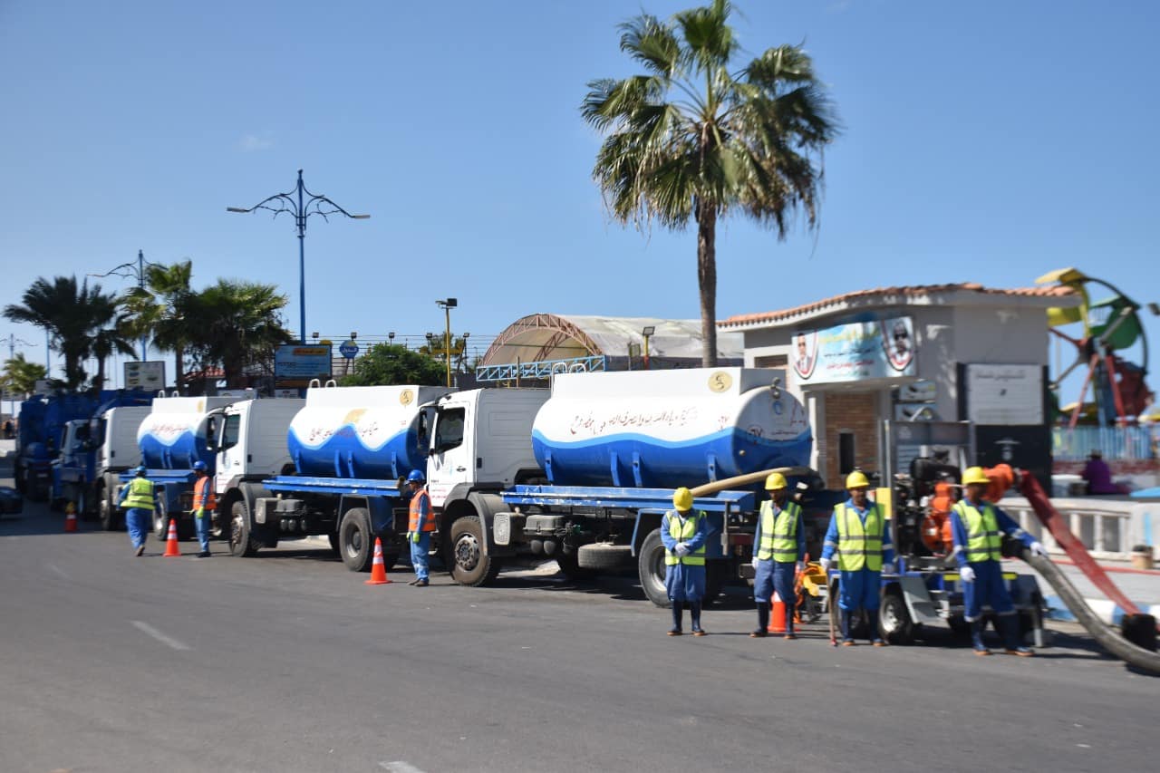 مياه مطروح تستعين ب١٤ سيارة صرف و١٦ معدة لأداء نموذج محاكاة لمواجهة الأزمات في الشتاء القادم بمطروح