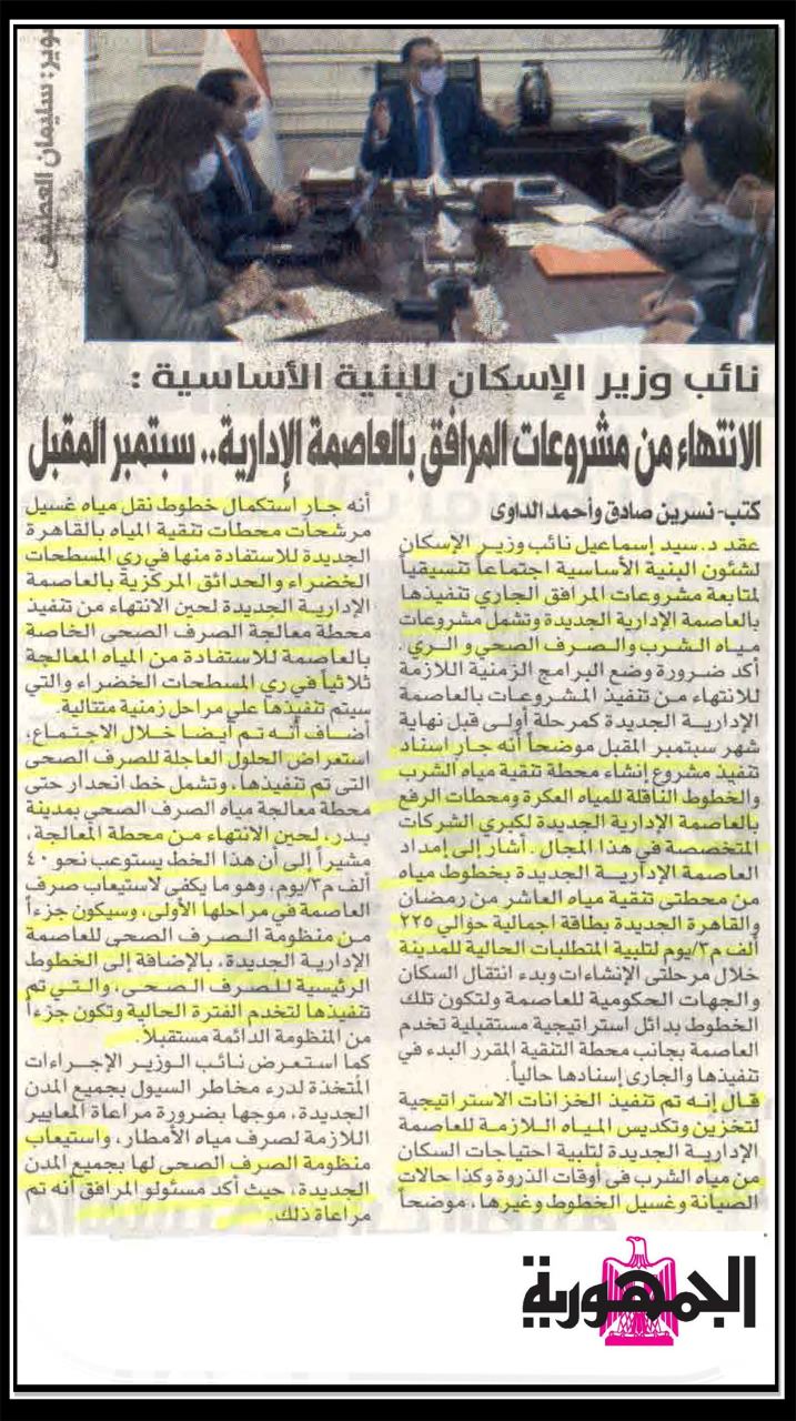 نائب وزير الاسكان للبنية التحتية ..الانتهاء من مشروعات المرافق بالعاصمة الادارية …سبتمبر المقبل .