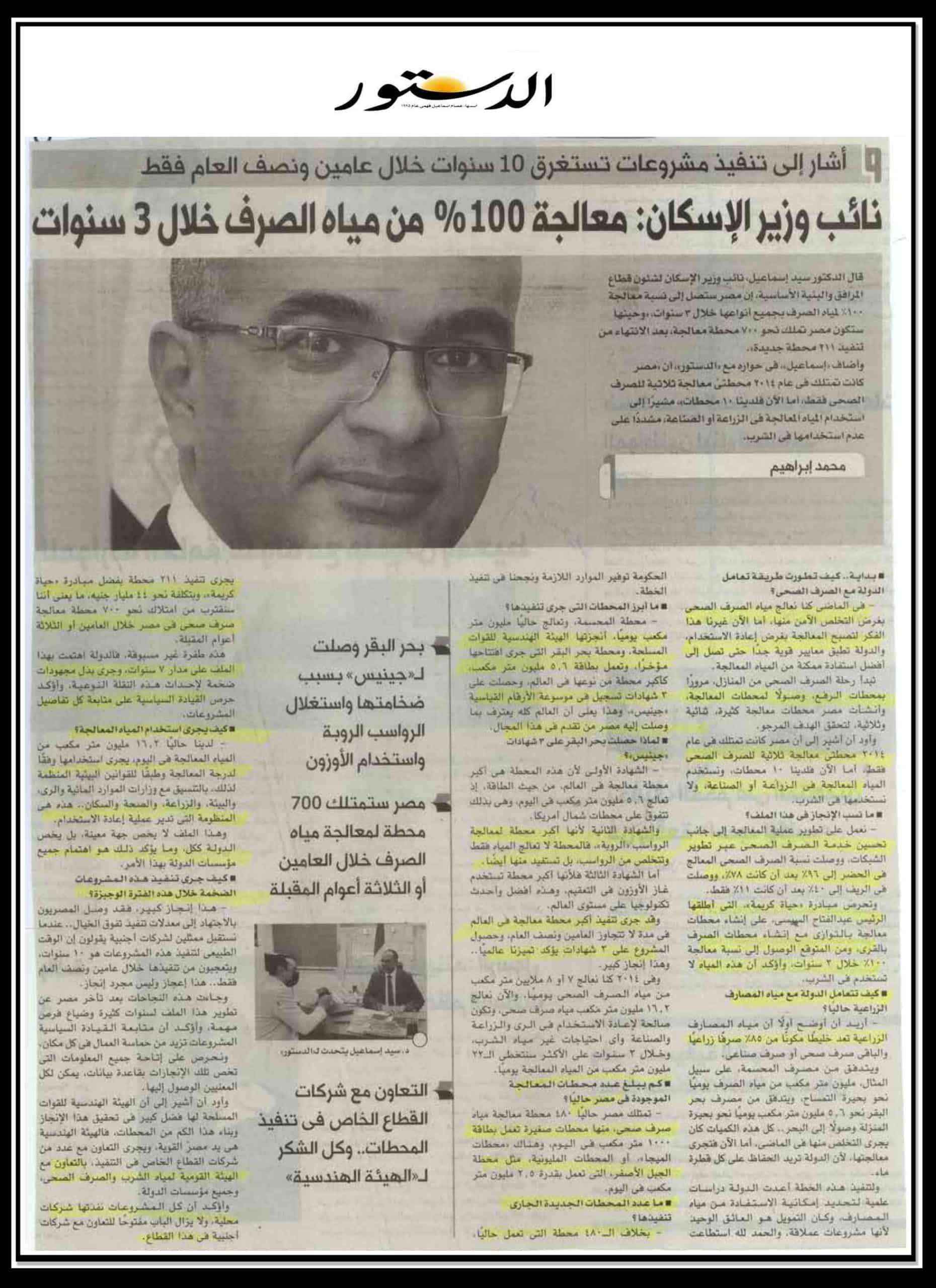 نائب وزير الاسكان: معالجة 100% من مياه الصرف خلال 3 سنوات