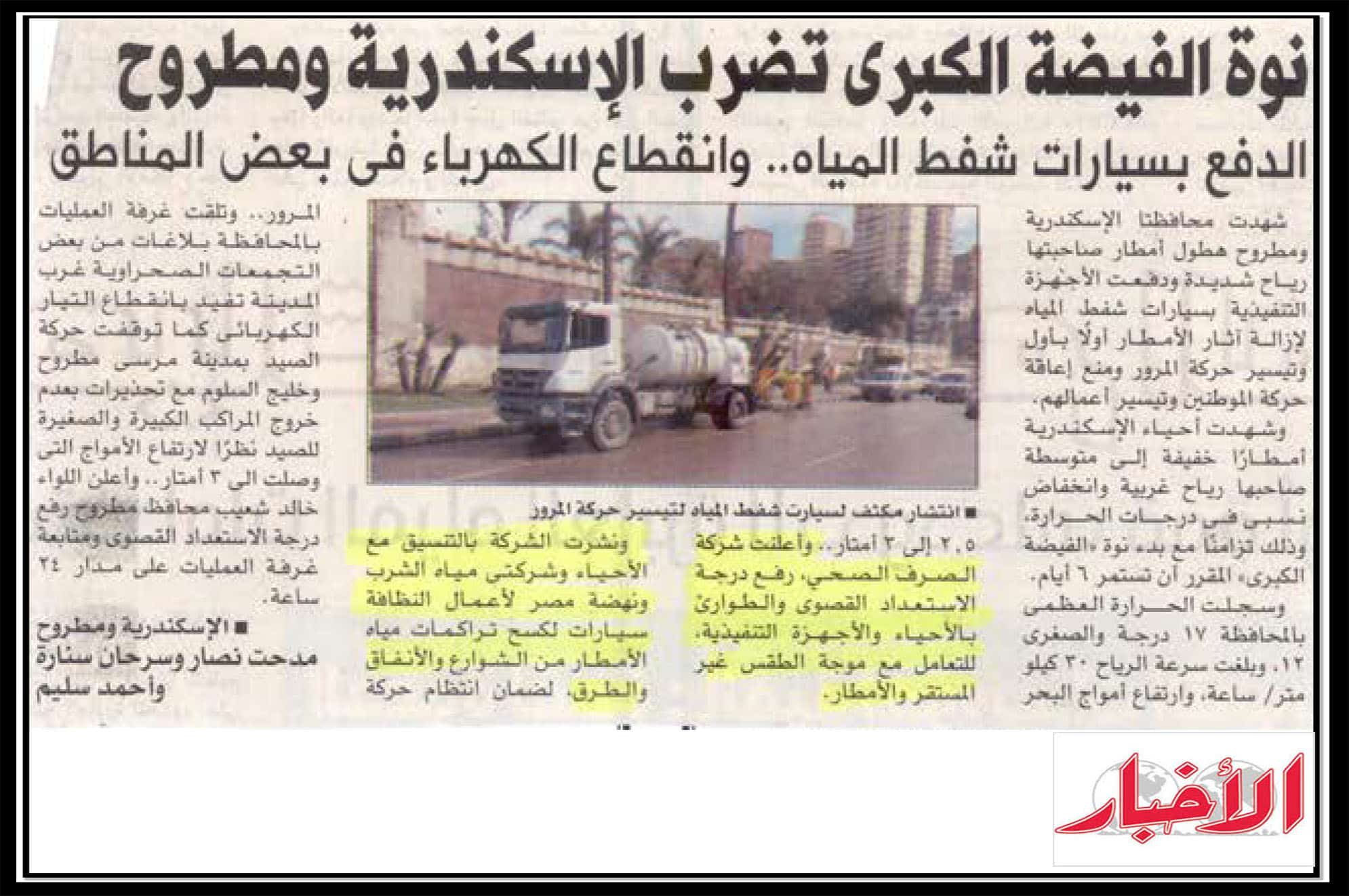 نوة الفيضة الكبري تضرب الإسكندرية ومطروح الدفع بسيارات شفط المياه .. وإنقاع الكهرباء في بعض المناطق.