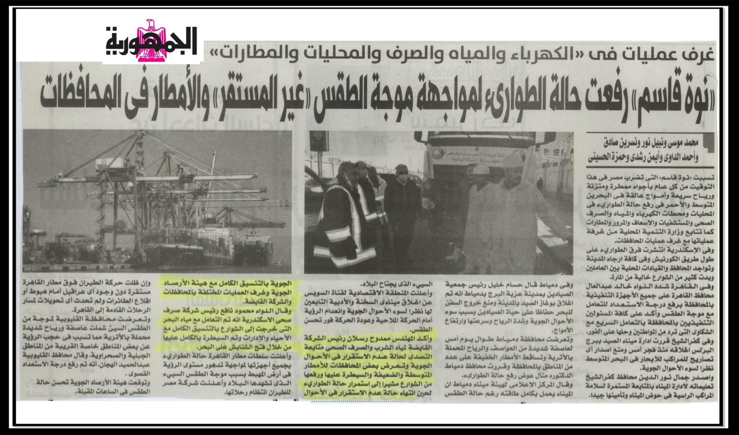 نوة قاسم رفعت حالة الطوارئ لمواجهة موجة الطقس غير المستقر