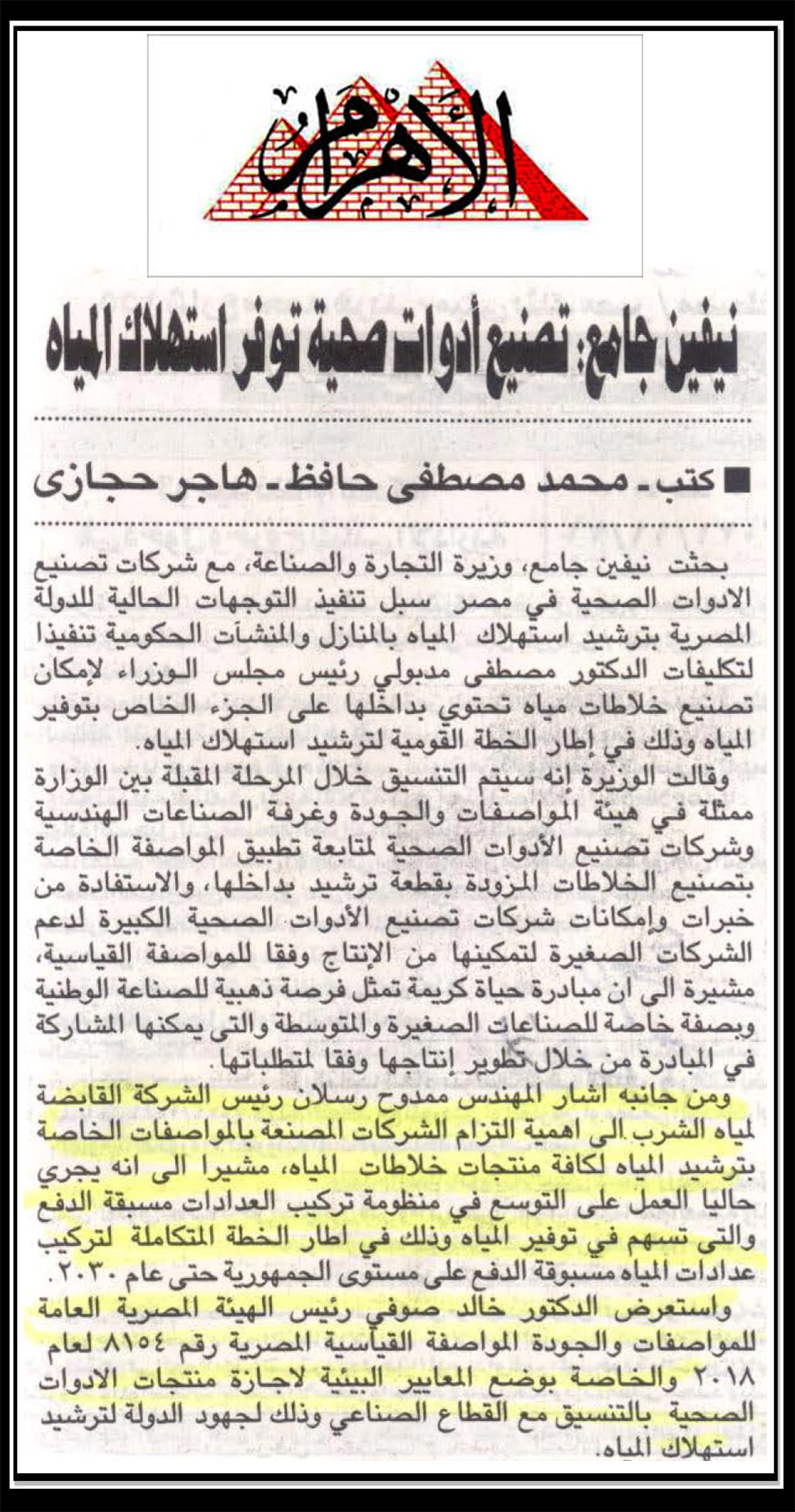 القابضة للمياه تشارك فى جائزة مصر للتميز الحكومي وتؤكد: التميز نهج مؤسسي مستدام