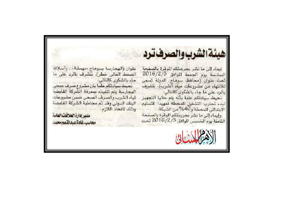 جميع الحقوق محفوظة الشركة القابضة لمياه الشرب والصرف الصحي 2004-2022