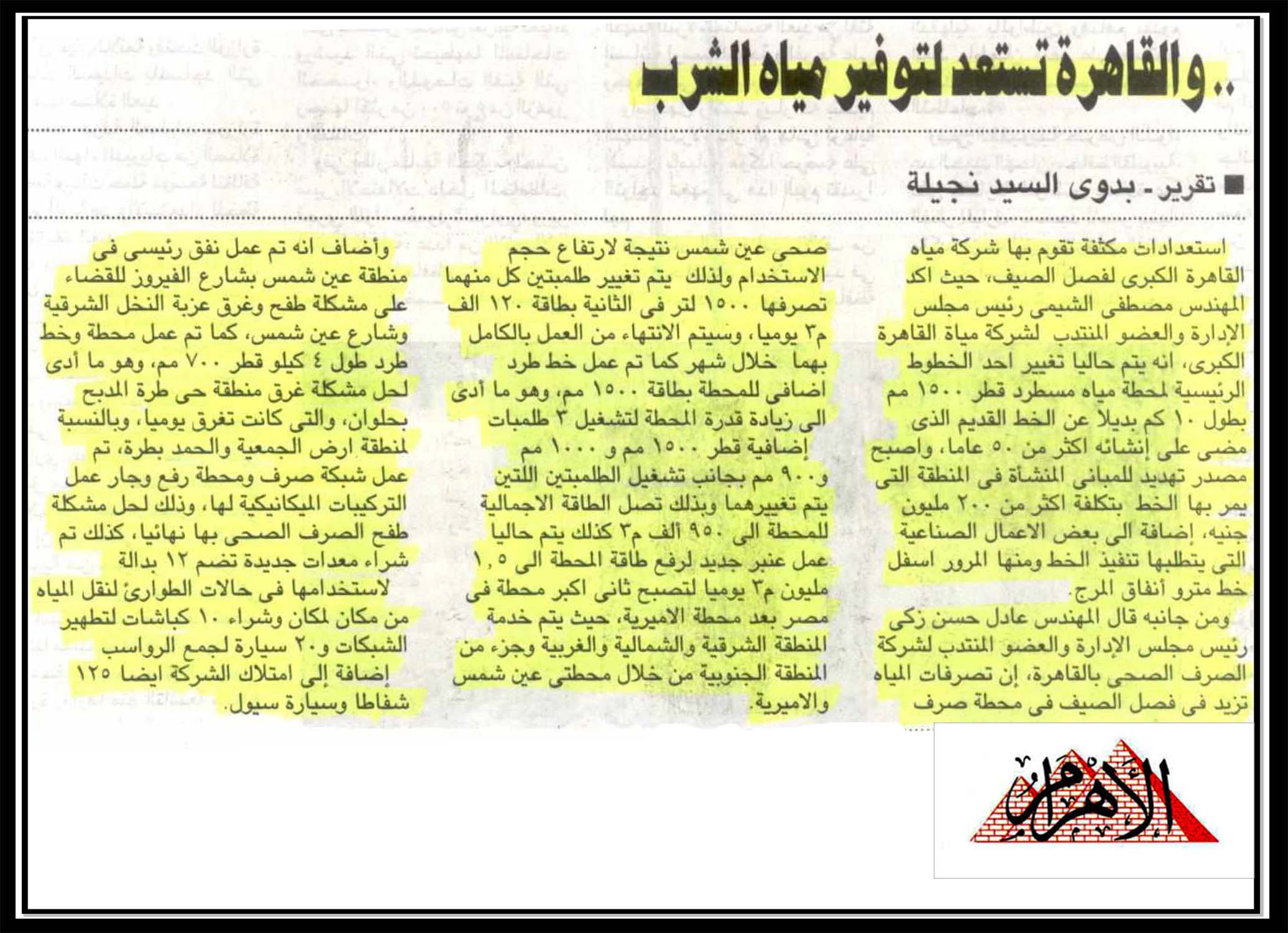 والقاهرة تستعد لتوفير مياه الشرب.