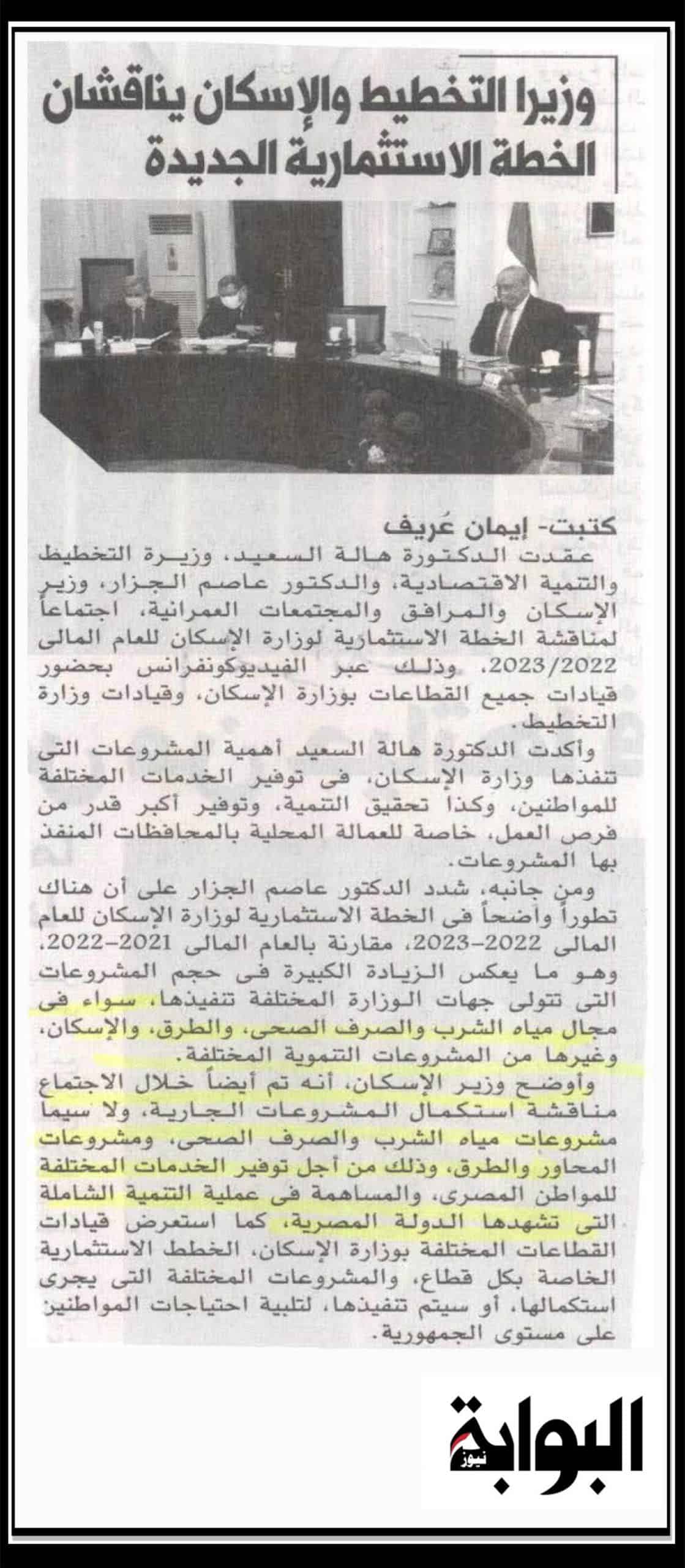 وزيرا التخطيط والاسكان يناقشان الخطة الاستثمارية الجديدة .