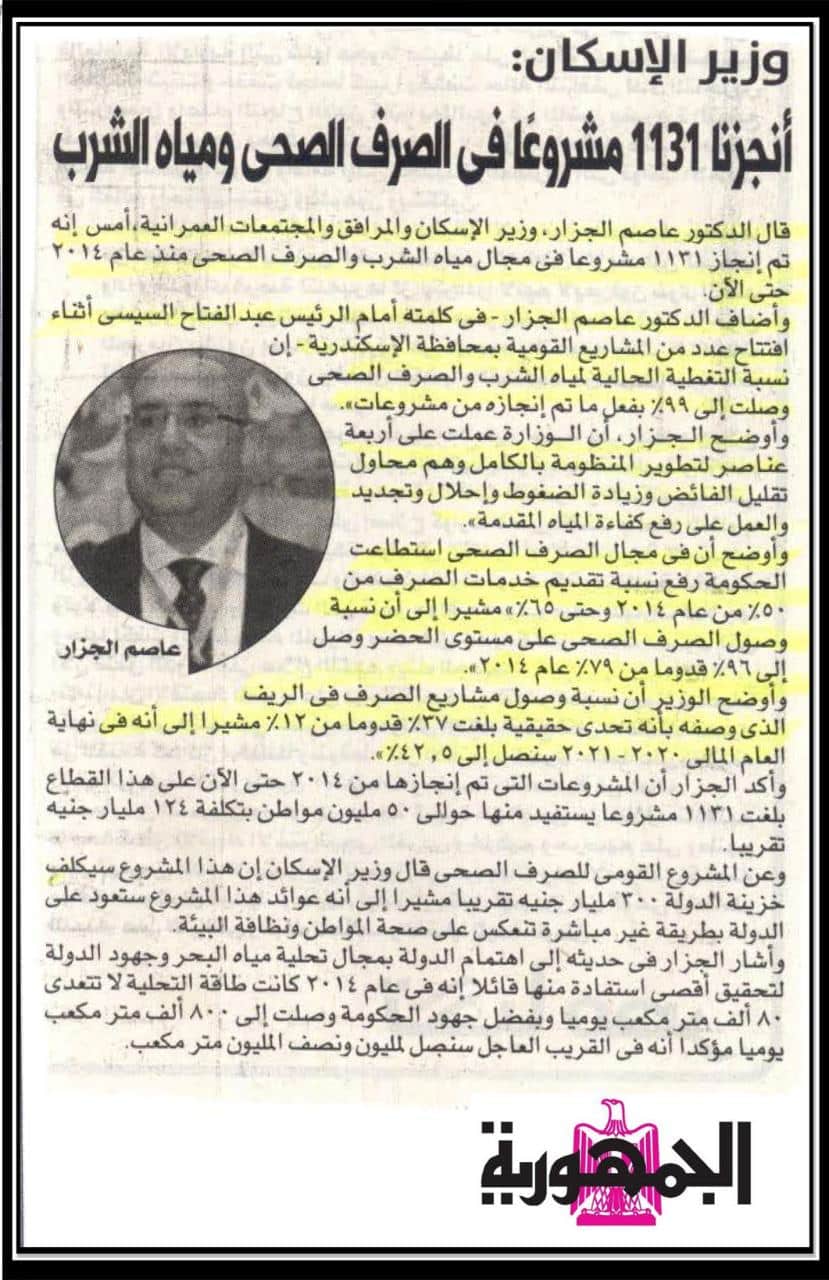 وزير الاسكان : انجزنا 1131 مشروعا في الصرف الصحي ومياه الشرب .