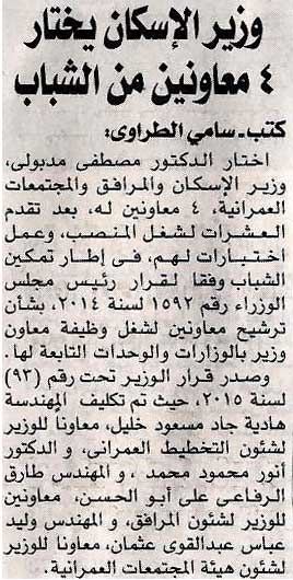 وزير الاسكان يختار 4 معاونين من الشباب