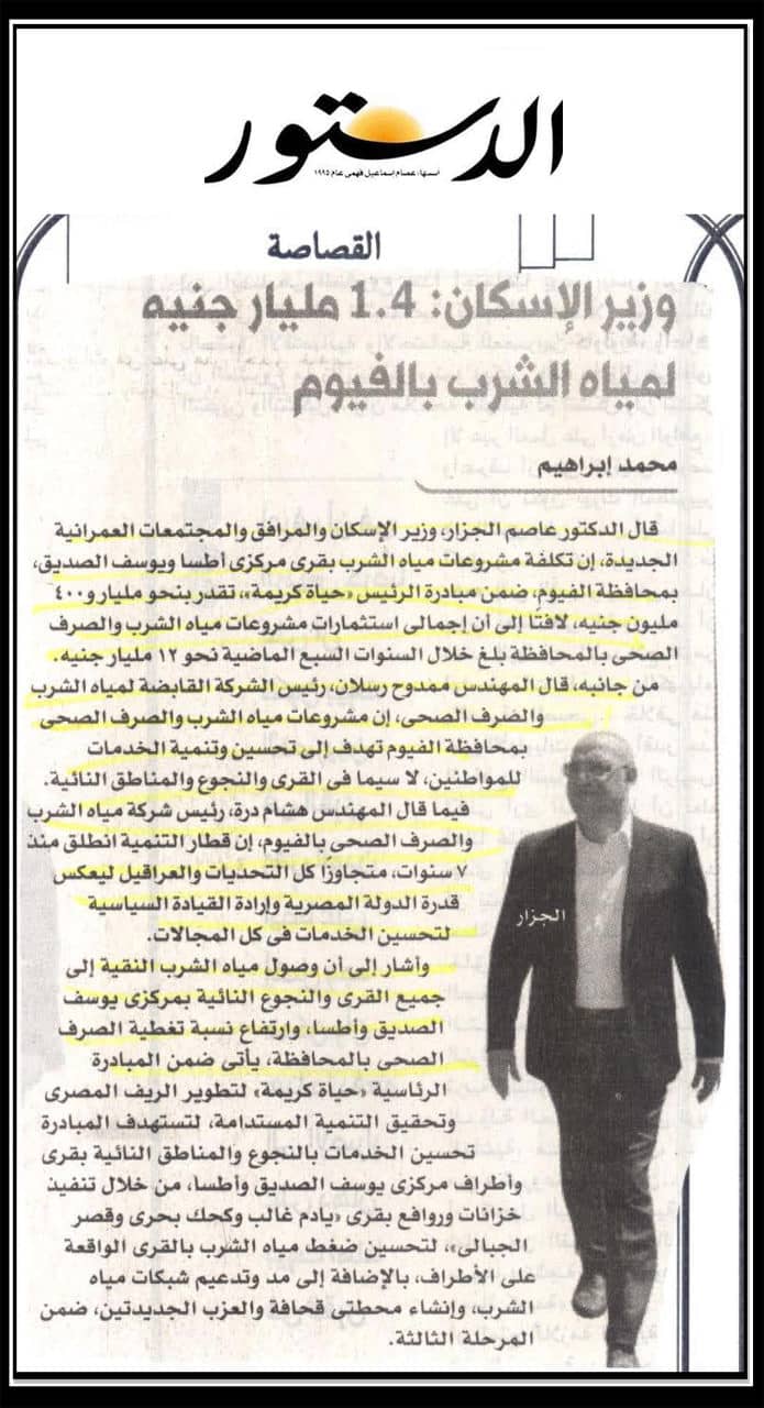 وزير الاسكان: 1.4 مليار جنية لمياه الشرب بالفيوم