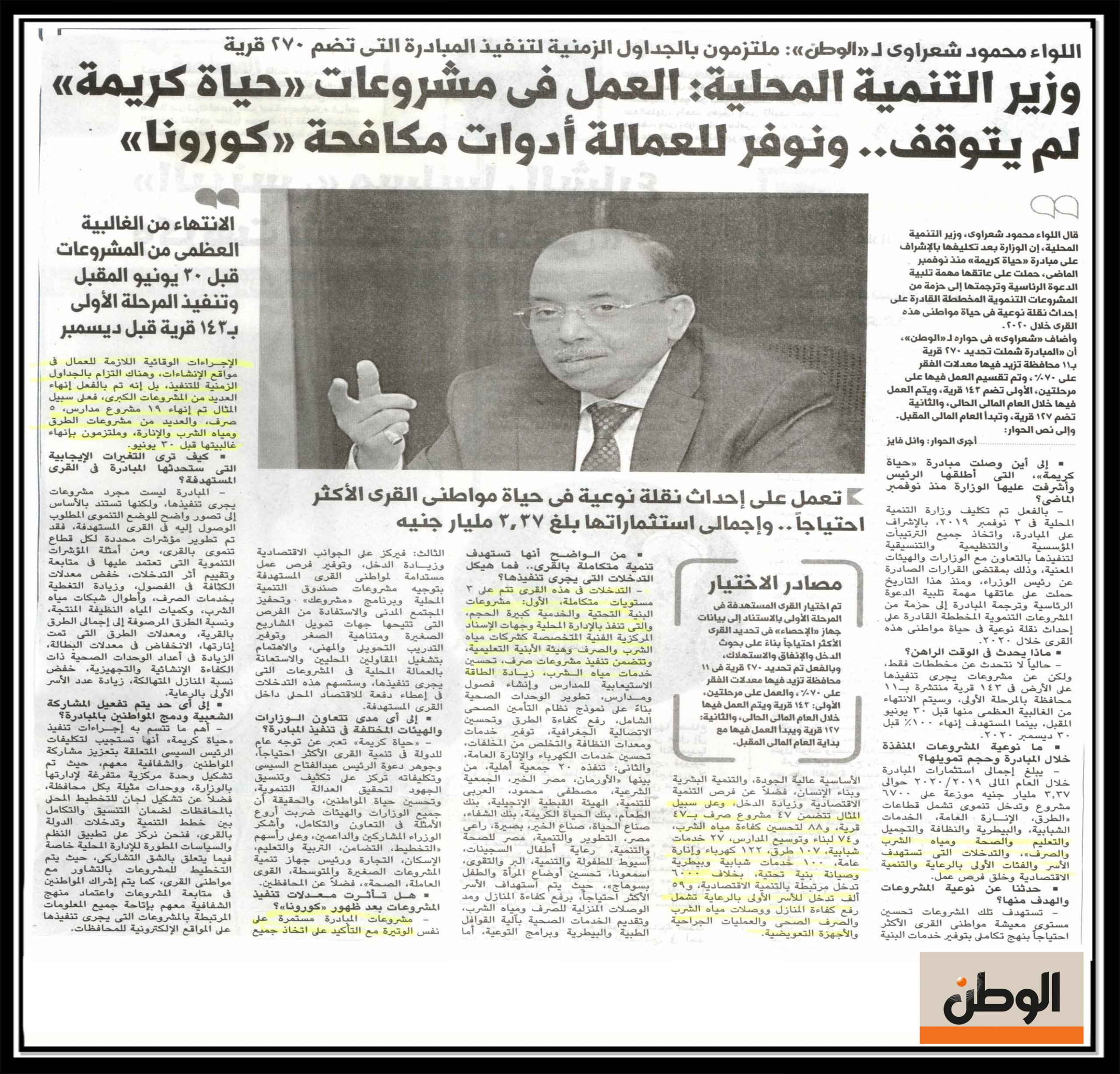 وزير التنمية المحلية : العمل في مشروعات ” حياة كريمة ” لم يتوقف .