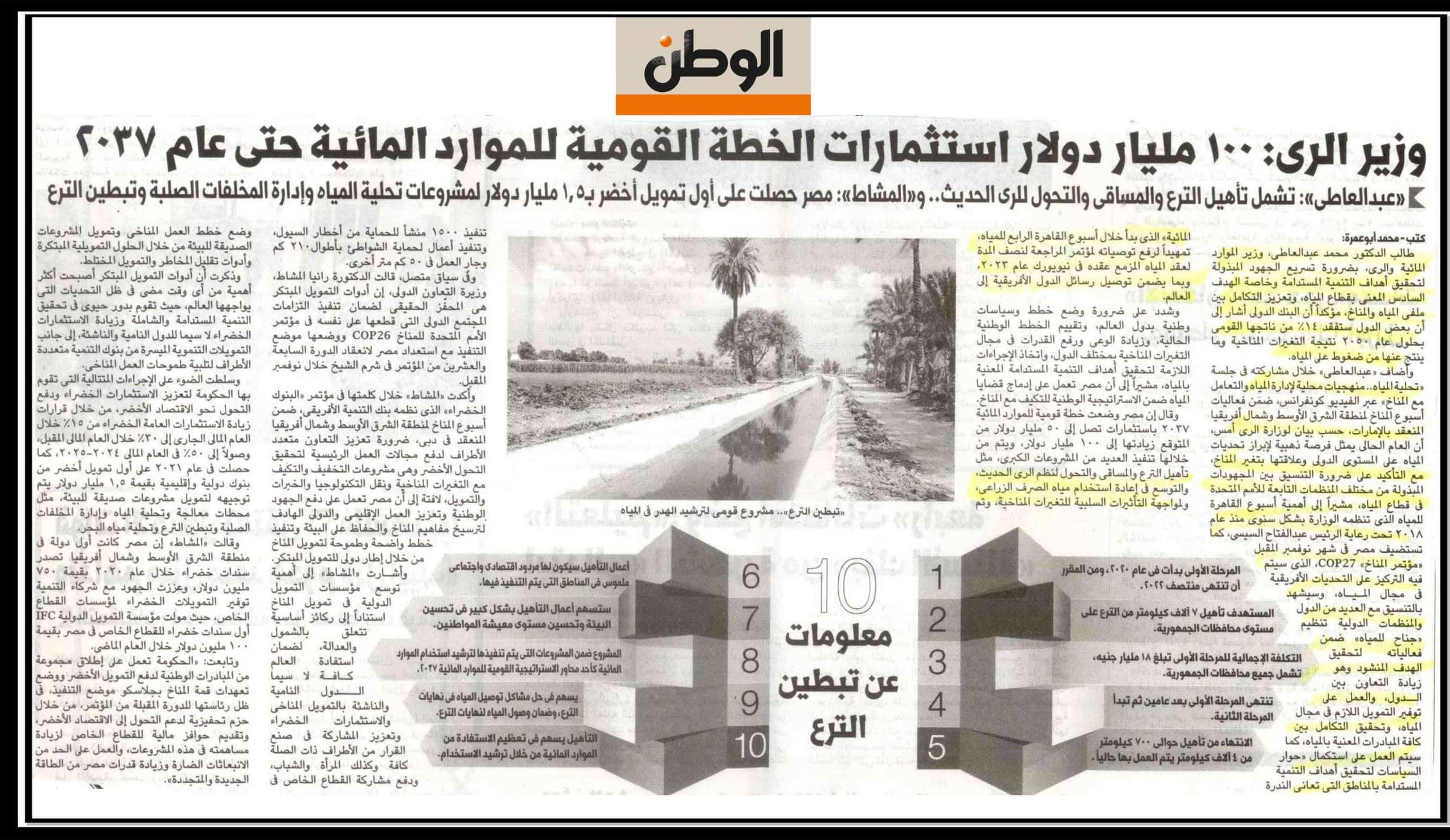 وزير الري: 100 مليار دولار استثمارات الخطة القومية للموارد المائية حتى عام 2037 .