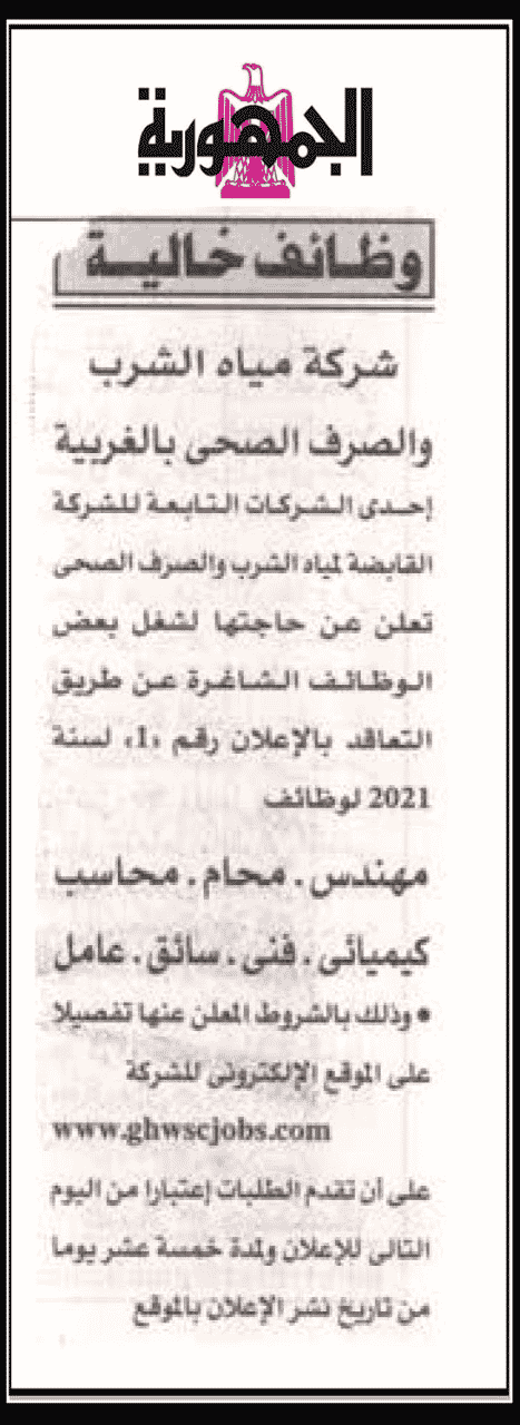 وظائف خالية: شركة مياه الشرب والصرف الصحي بالغربية .