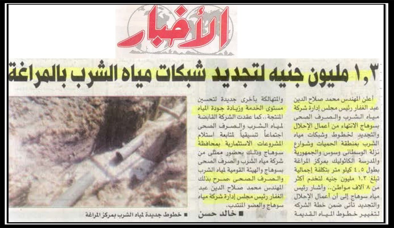 1.3 مليون جنية لتجديد شبكات مياه الشرب بالمراغة