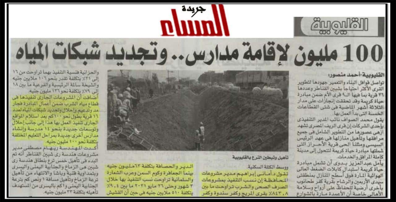100 مليون لإقامة مدارس وتجديد شبكات المياه