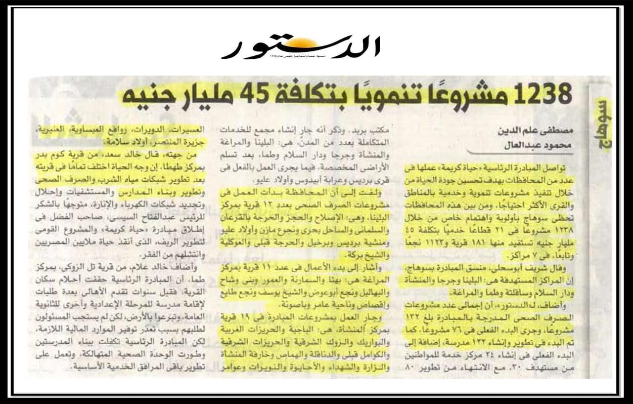 1238 مشروعا تنمويا بتكلفة 45 مليار جنية