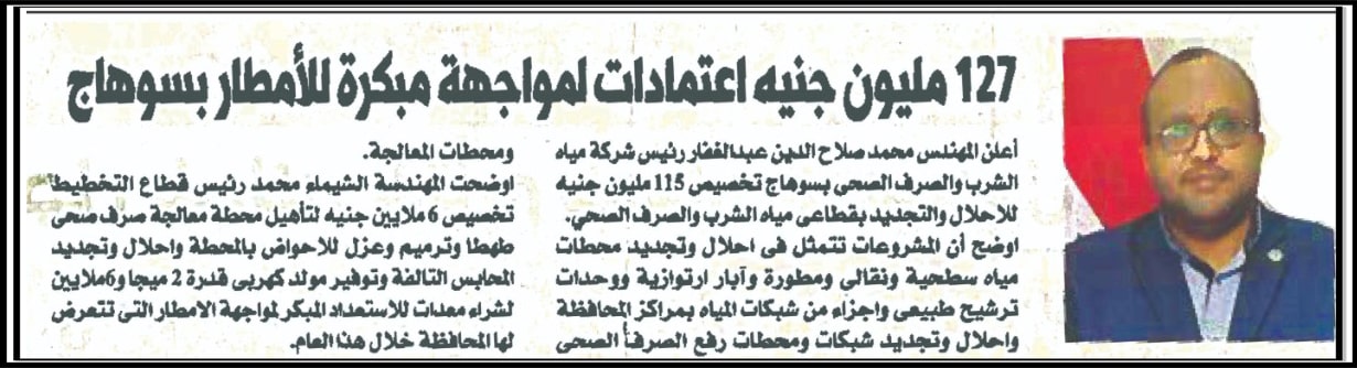 127 مليون جنية اعتمادات لمواجهة مبكرة للامطار بسوهاج.