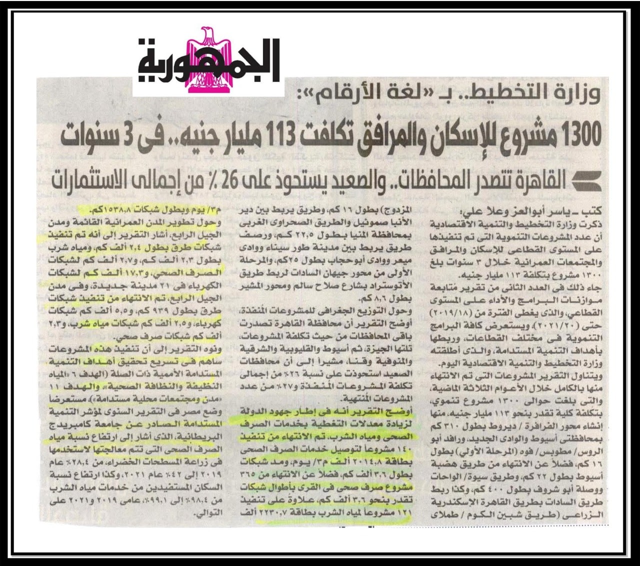 1300 مشروع للاسكان والمرافق تكلفت 113 مليار جنية ..في 3 سنوات.