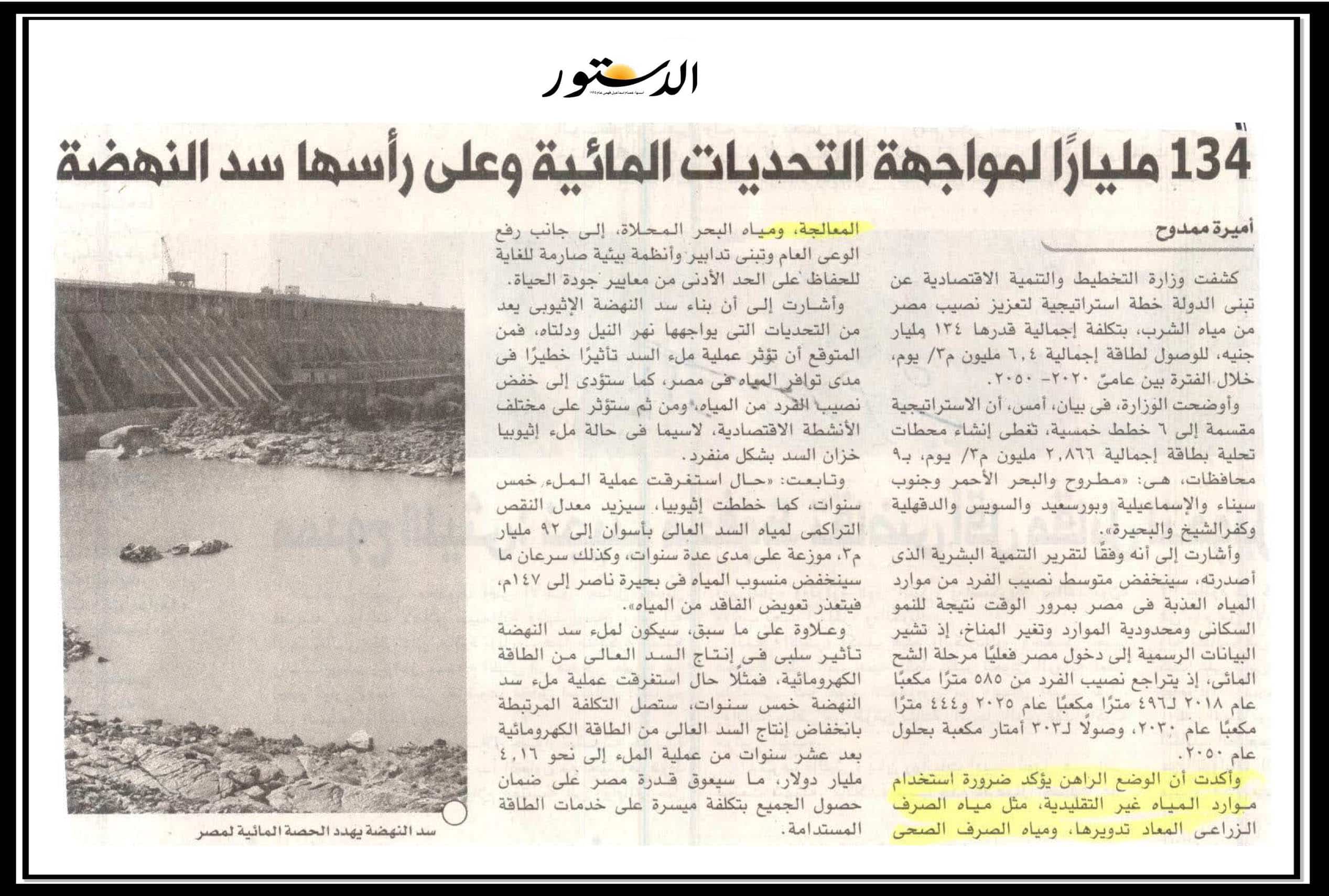 134 مليار لمواجهة التحديات المائية وعلى رأسها سد النهضة