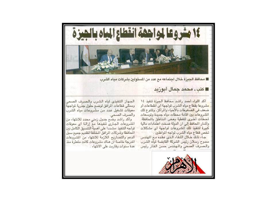 14 مشروعا لمواجهةانقطاع المياه بالجيزة .