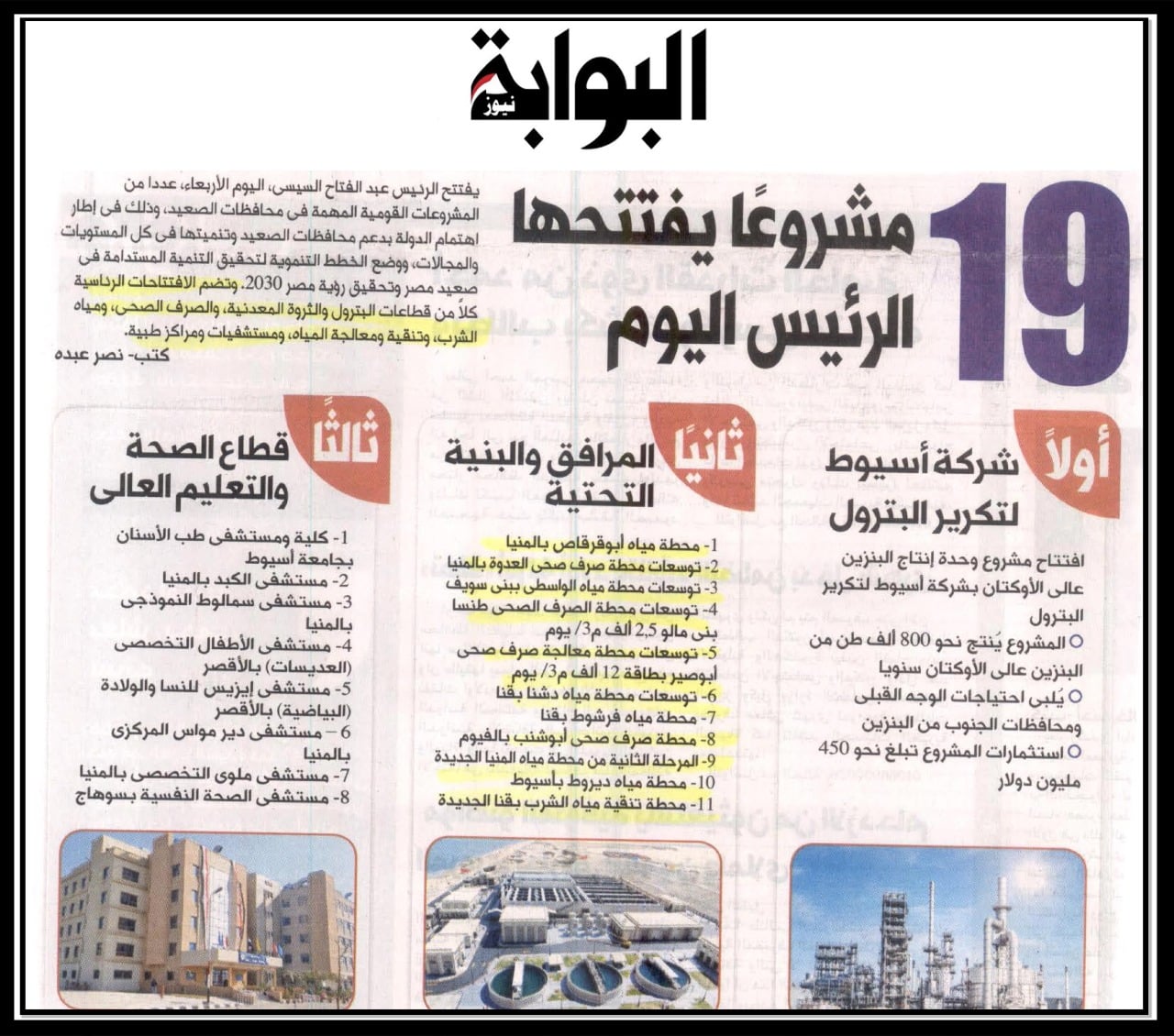 19 مشروعا يفتتحها الرئيس اليوم