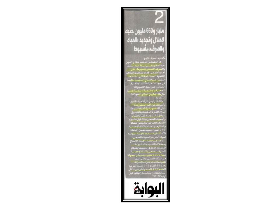 2 مليار و660 مليون جنية لاحلال وتجديد المياه والصرف بأسيوط .