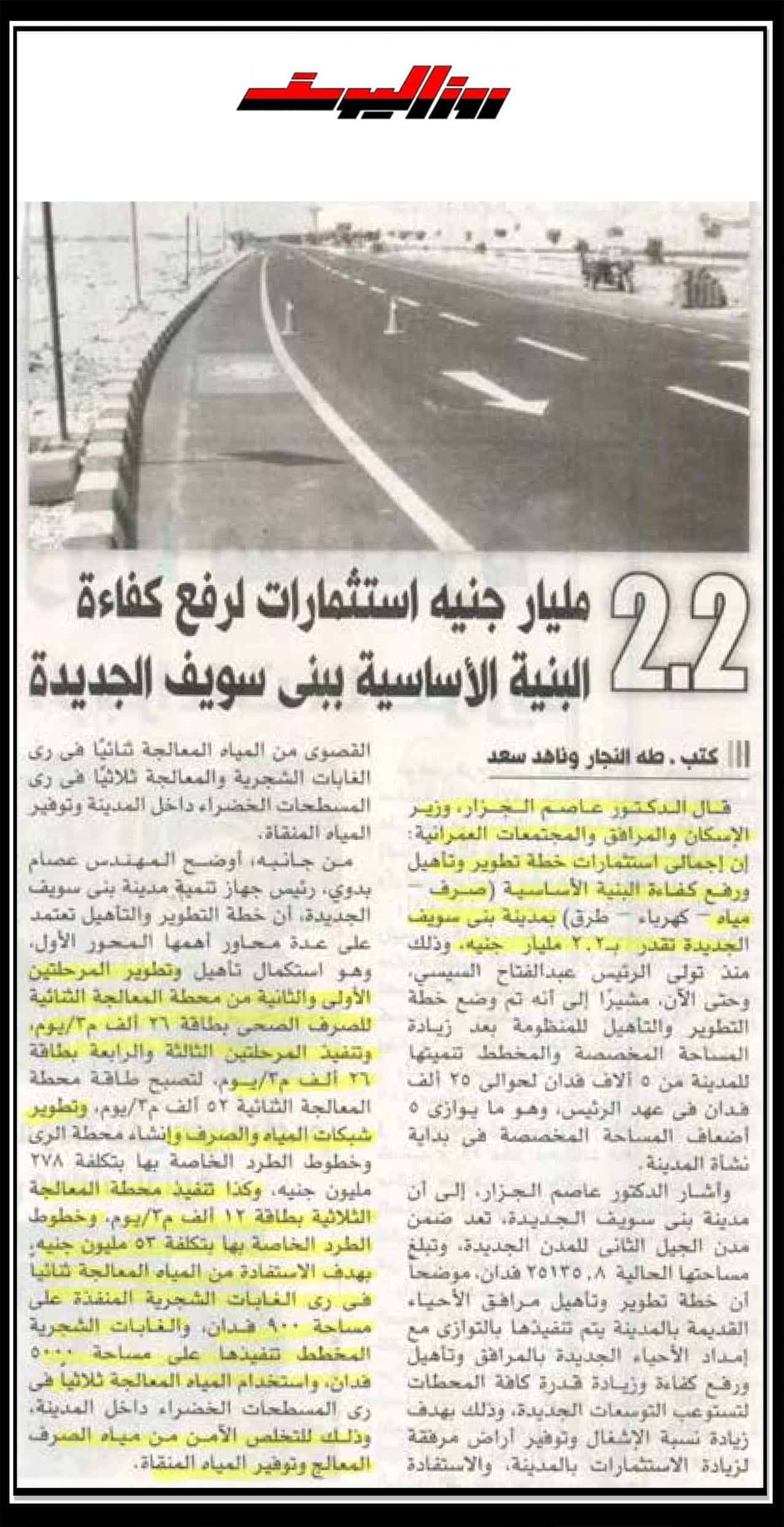 2.2 مليار جنية استثمارات لرفع كفاءة البنية الأساسية ببني سويف الجديدة