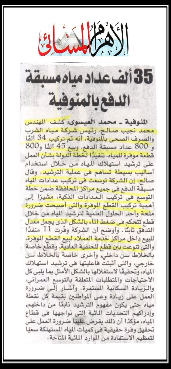 35 الف عداد مياه مسبقة الدفع بالمنوفية