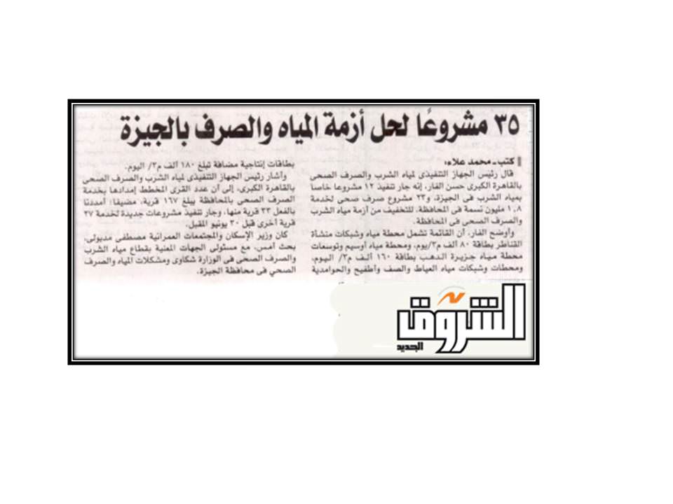 35 مشروعا لحل أزمة المياه والصرف بالجيزة .