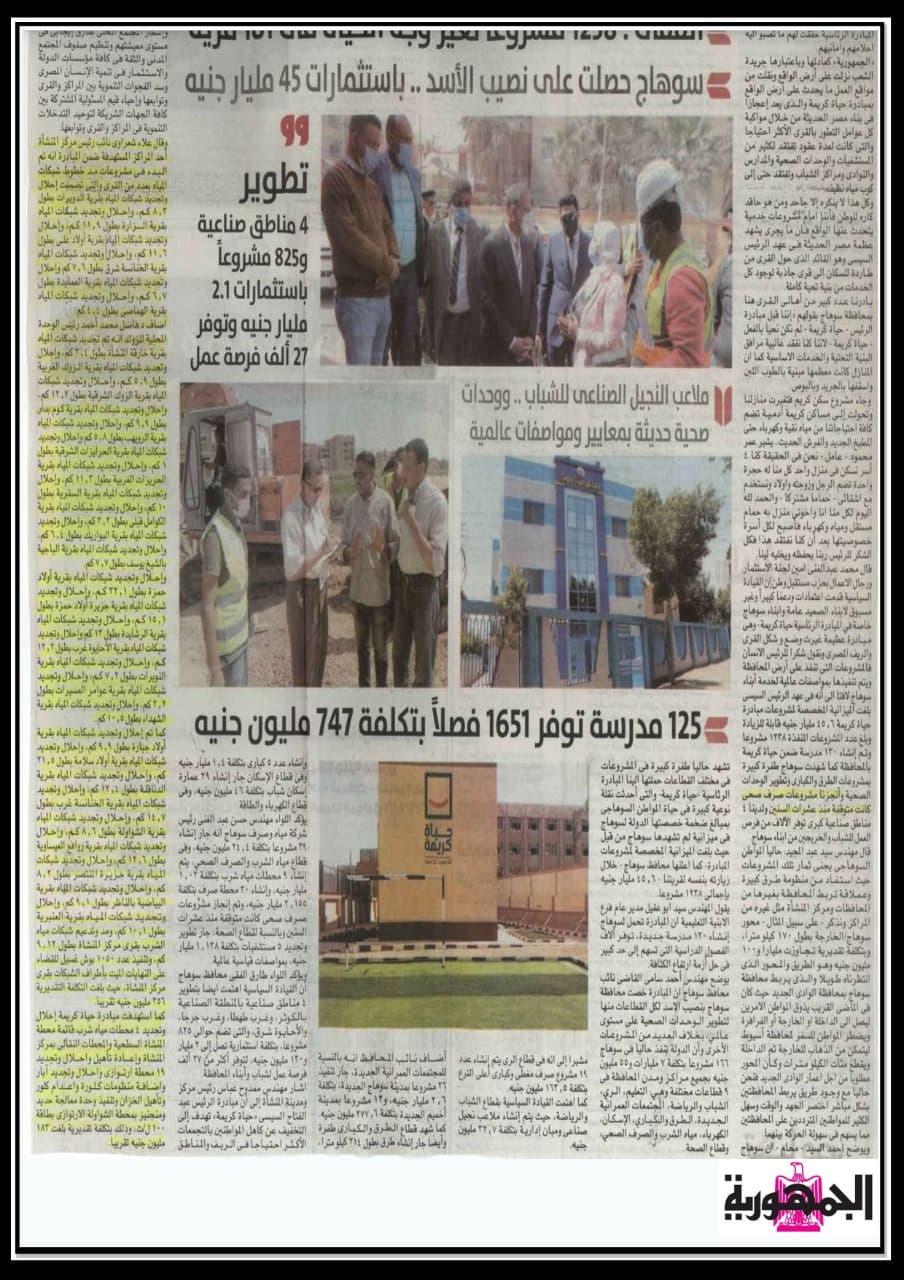 تطوير 4 مناطق صناعية و825 مشروعا باستثمارات 2.1 مليار جنية وتوفر 27 الف فرصة عمل