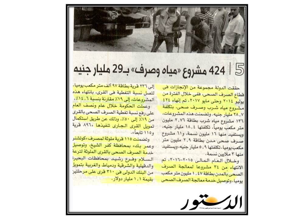 424 مشروع مياه وصرف بــ29 مليار جنية