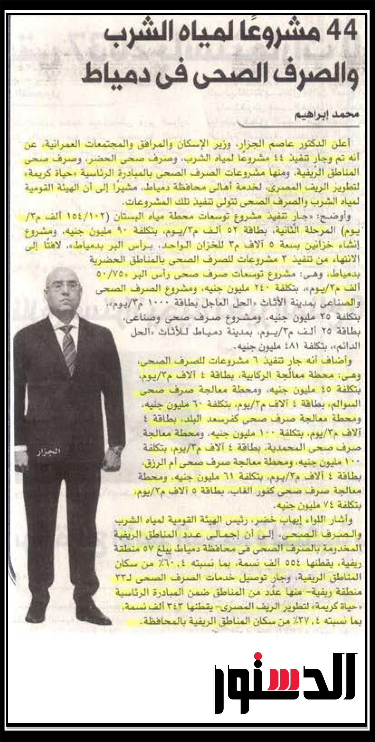 44 مشروعاً لمياه الشرب الصرف الصحي بدمياط.