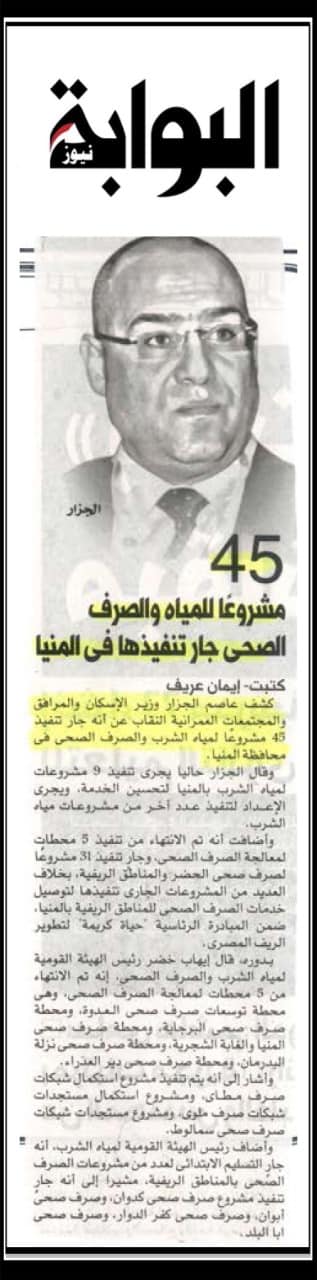 45 مشروعا للمياه والصرف الصحي جار تنفيذها في المنيا