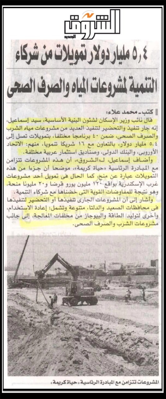 5.4 مليار دولار تمويلات من شركاء التنمية لمشروعات المياه والصرف الصحي